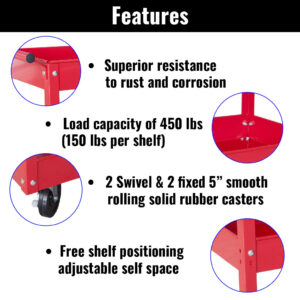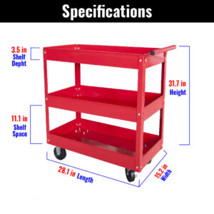 3 Shelf Tier Service (Commercial/Residential) Utility Cart, Heavy Duty tool car with Locka…