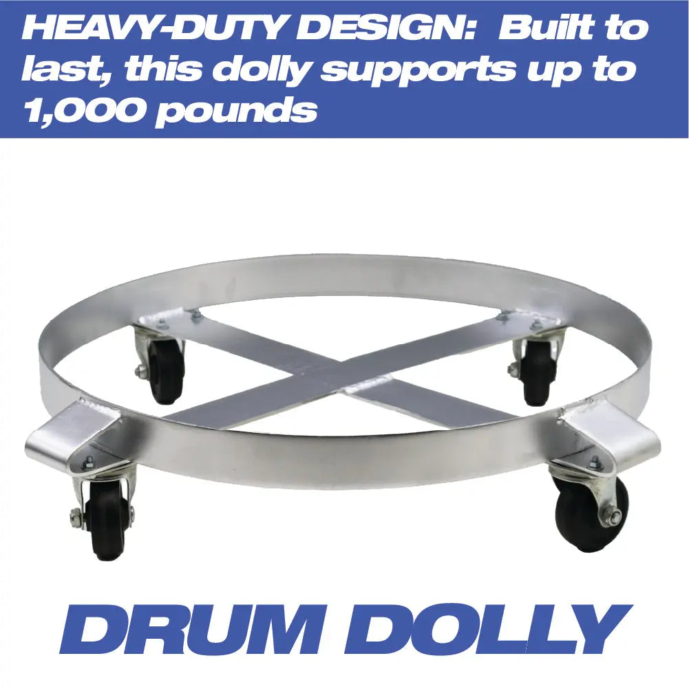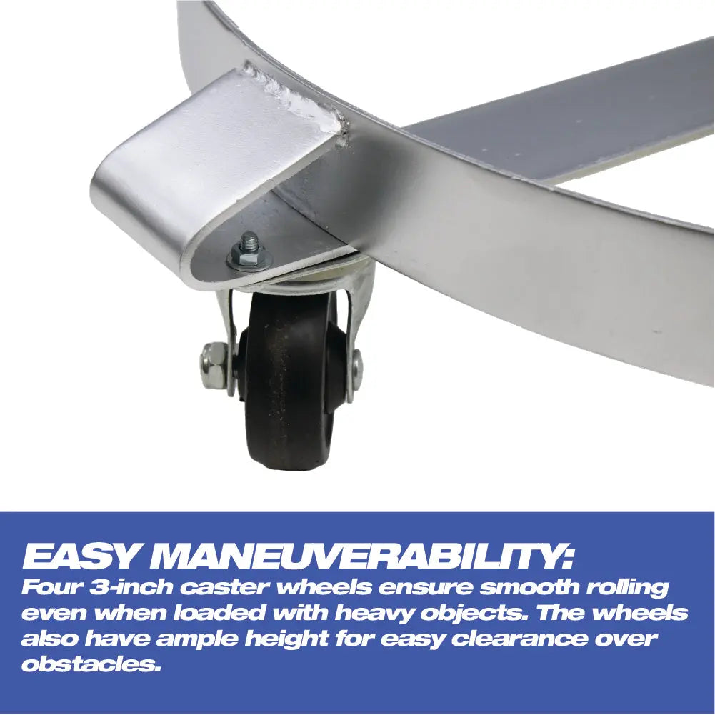 55-Gallon Drum Dolly or Garbage Can Dolly – Heavy-Duty Metal Dolly with Cross Braces and Caster Wheels – 1,000-Pound Capacity (Silver)