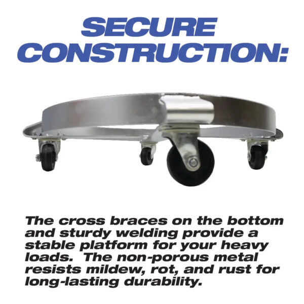 Move heavy drums and overflowing garbage cans with ease using this silver 55-gallon drum dolly. This dolly is a great way to save your back – National Supply Company