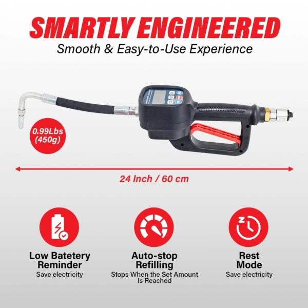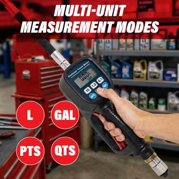 Digital Oil Meter Gun with LCD Display for Lubricants and Diesel, Preset Dispensing Gun with Automatic Shutoff, High Accuracy ±0.5%, Heavy Duty Oil Transfer Meter for Workshop, Garage