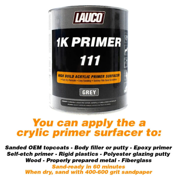 Lauco 1K High Build Gray Acrylic Primer Surfacer, 1 Gallon – Fast Filling, Drying, Easy Sanding, – National Supply Company