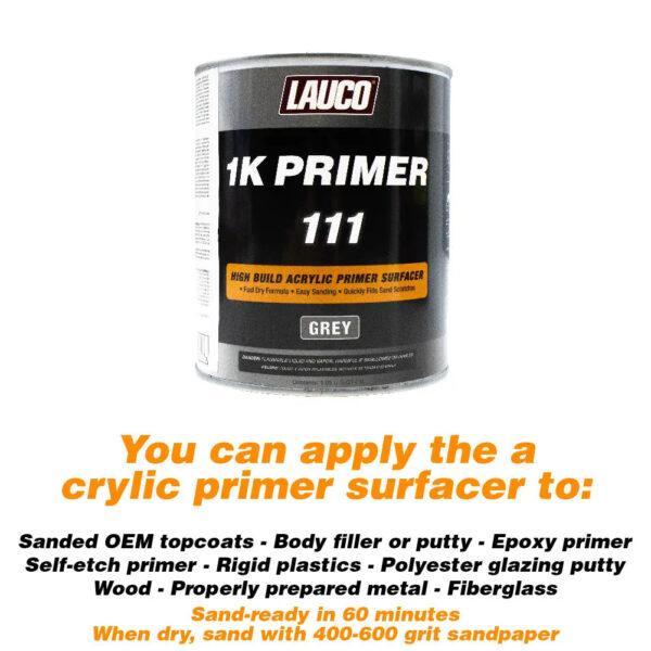 Lauco 1K High Build Gray Acrylic Primer Surfacer, 1 Gallon – Fast Filling, Drying, Easy Sanding, – National Supply Company