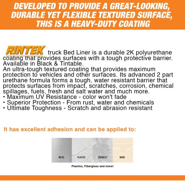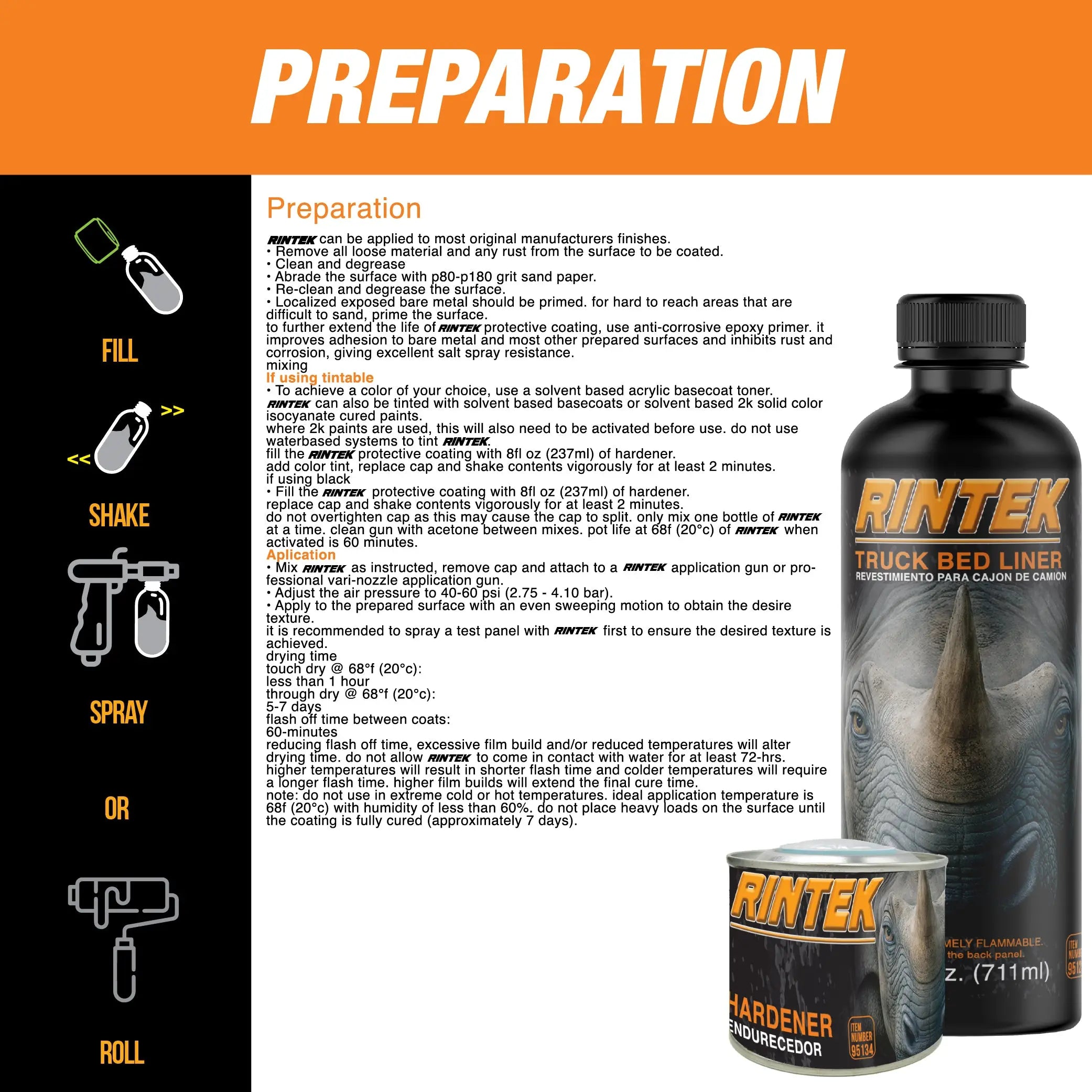 Adhesive & Bed Liner, FillersRintek Spray-On Truck Bed Liner Kit – Tintable 1 Gallon – Easy 3:1 Mix