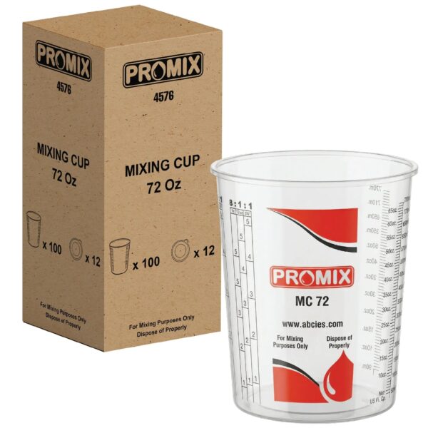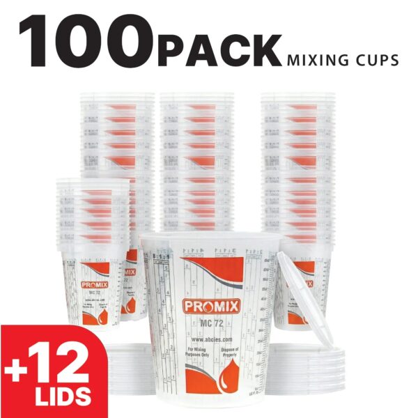 Reusable Measuring Cups Pack of 100 with 12 lids – Size 72 Ounce – Calibrated Mixing ratios on Side – (4576)