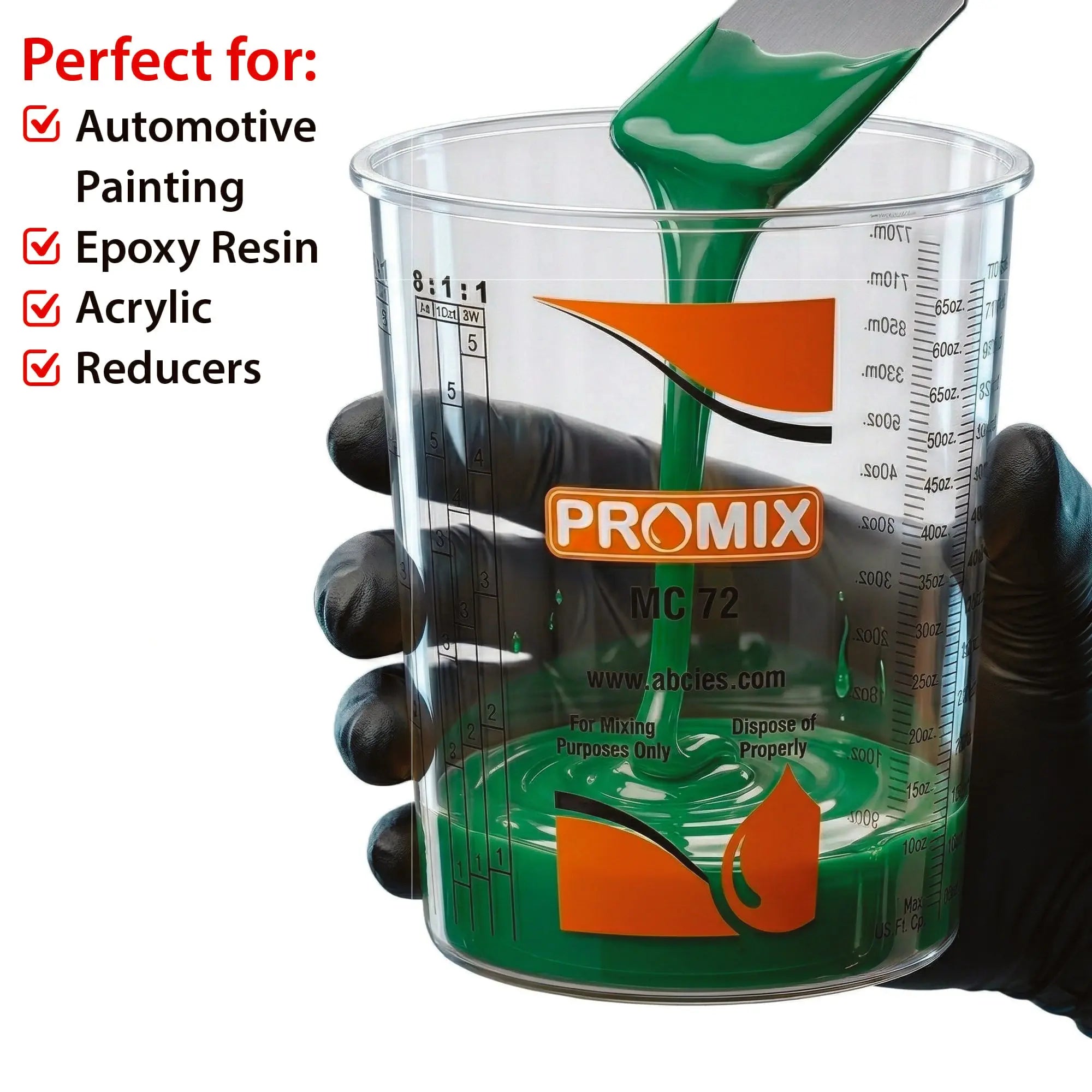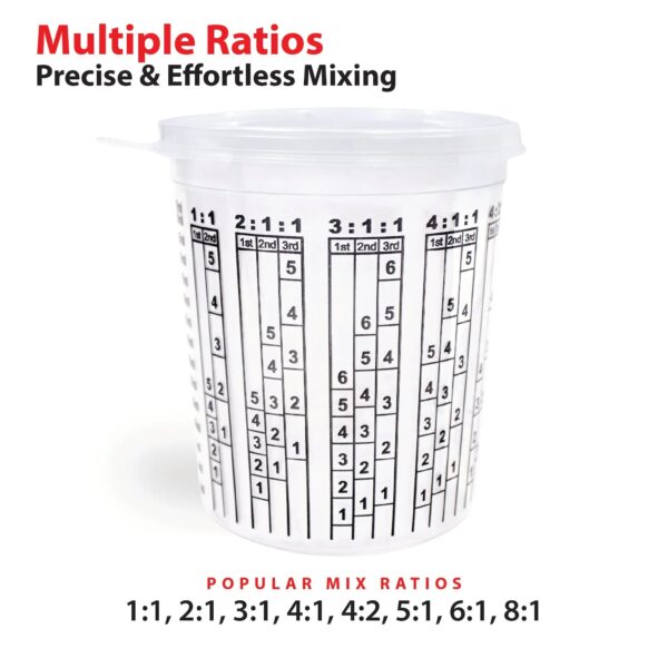 Measuring Cups Pack of 100 with 12 lids – Size 72 Ounce – Calibrated Mixing ratios on Side – National Supply Company