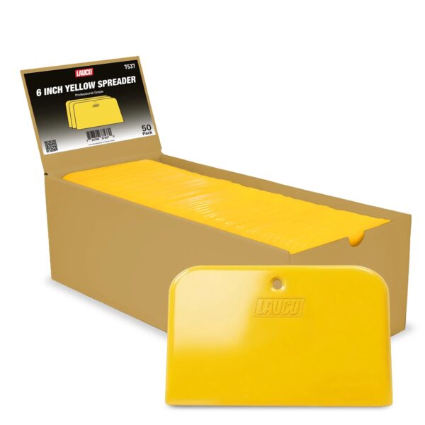 LAUCO Auto Body Filler Yellow Spreaders (Pack of 50) Reusable Plastic Spreader for Automotive Fillers, Putties, Glazes, Caulks and Paint – Easy Application (50, 6″)