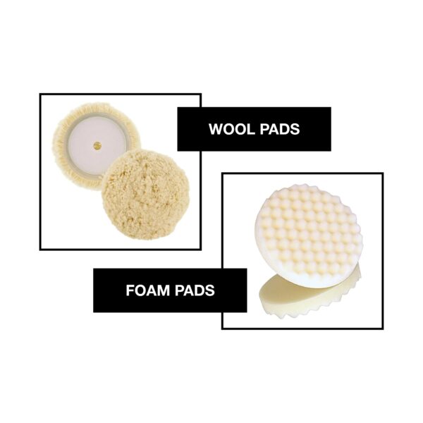 Our Premium polish pad Cleaning Tool Set. It features a polishing spur and heavy-duty foam pad brush for cleaning pads, prolonging their life and achieving a flawless finish.